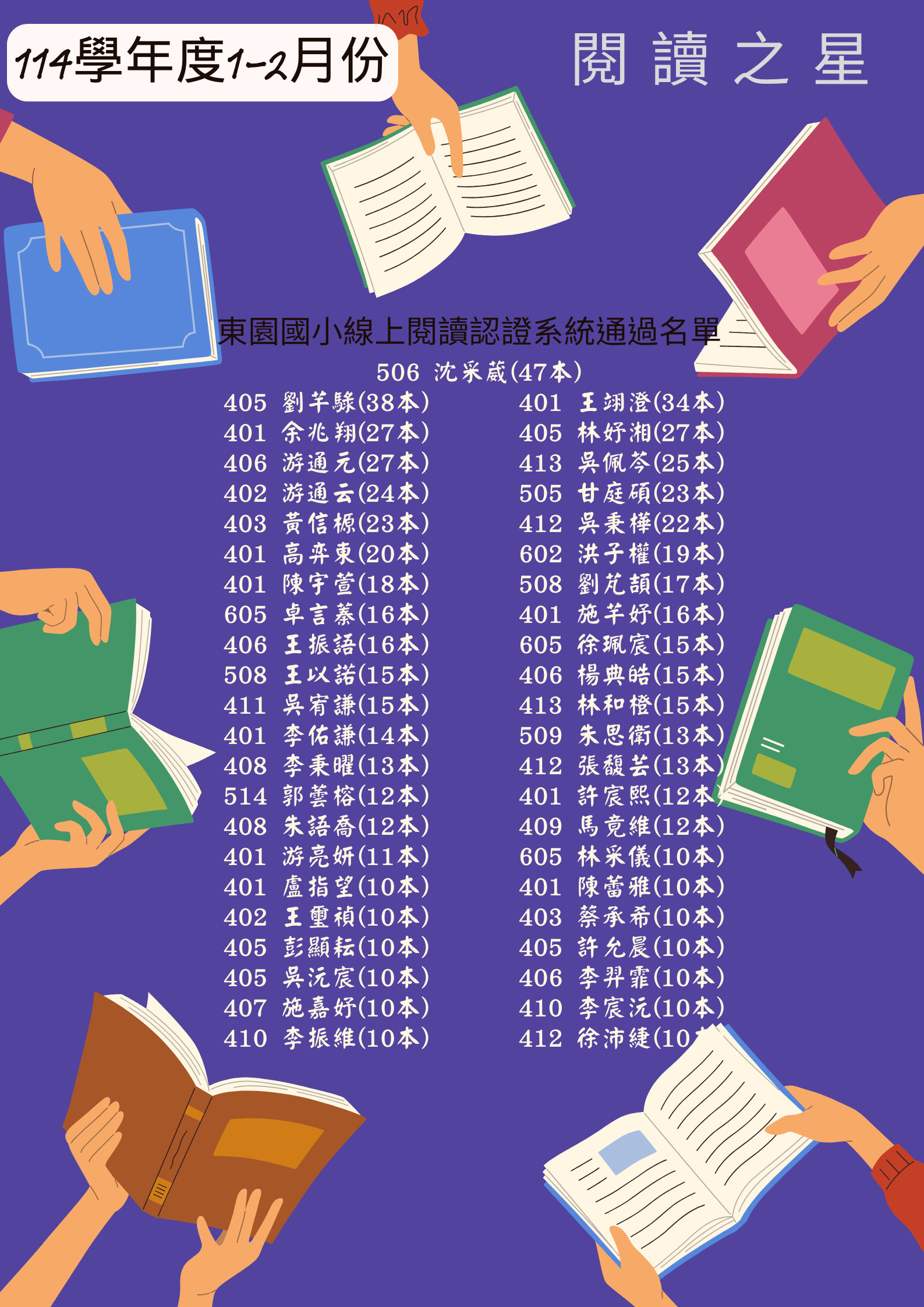 線上閱讀認證系統1-2月份通過名單: