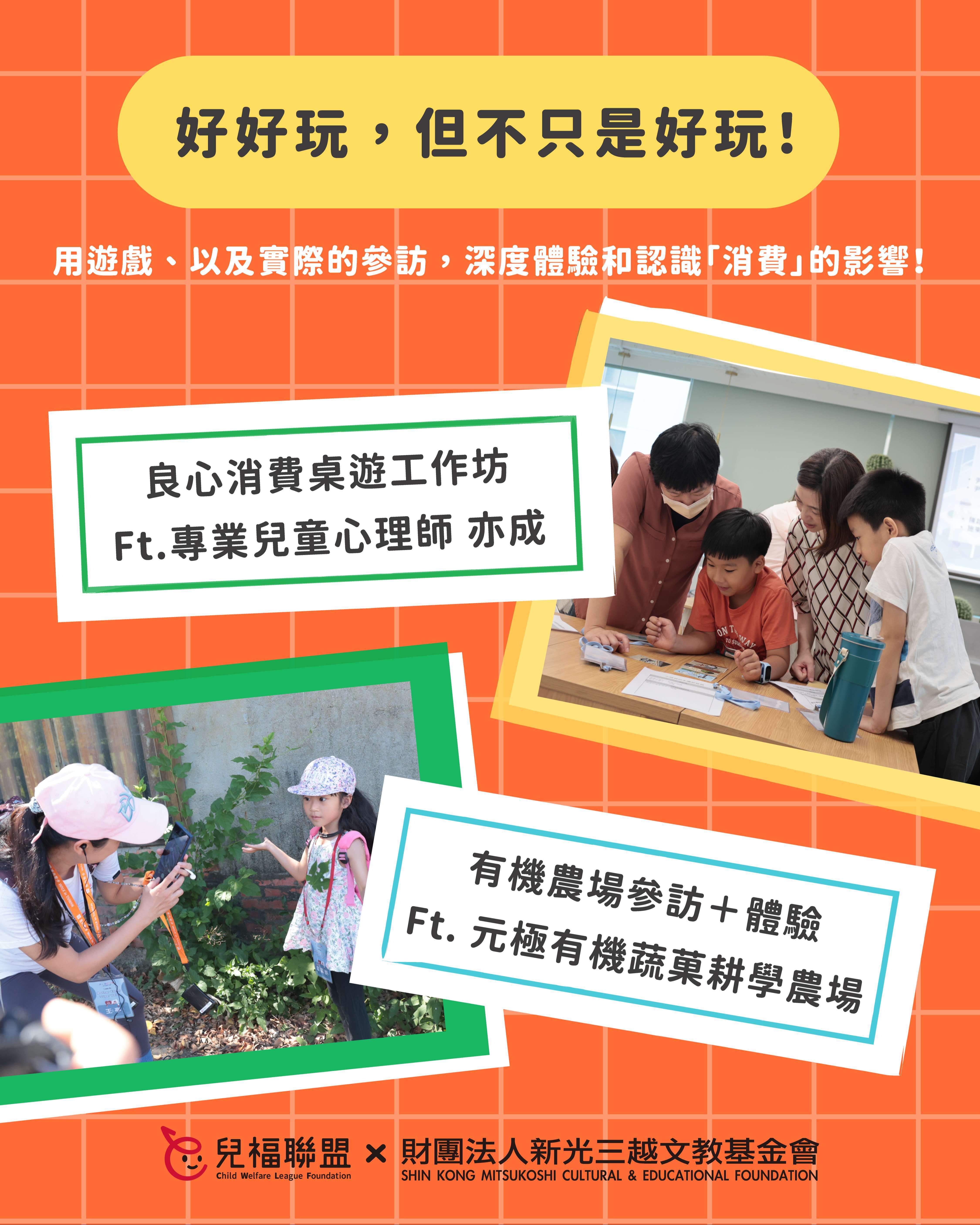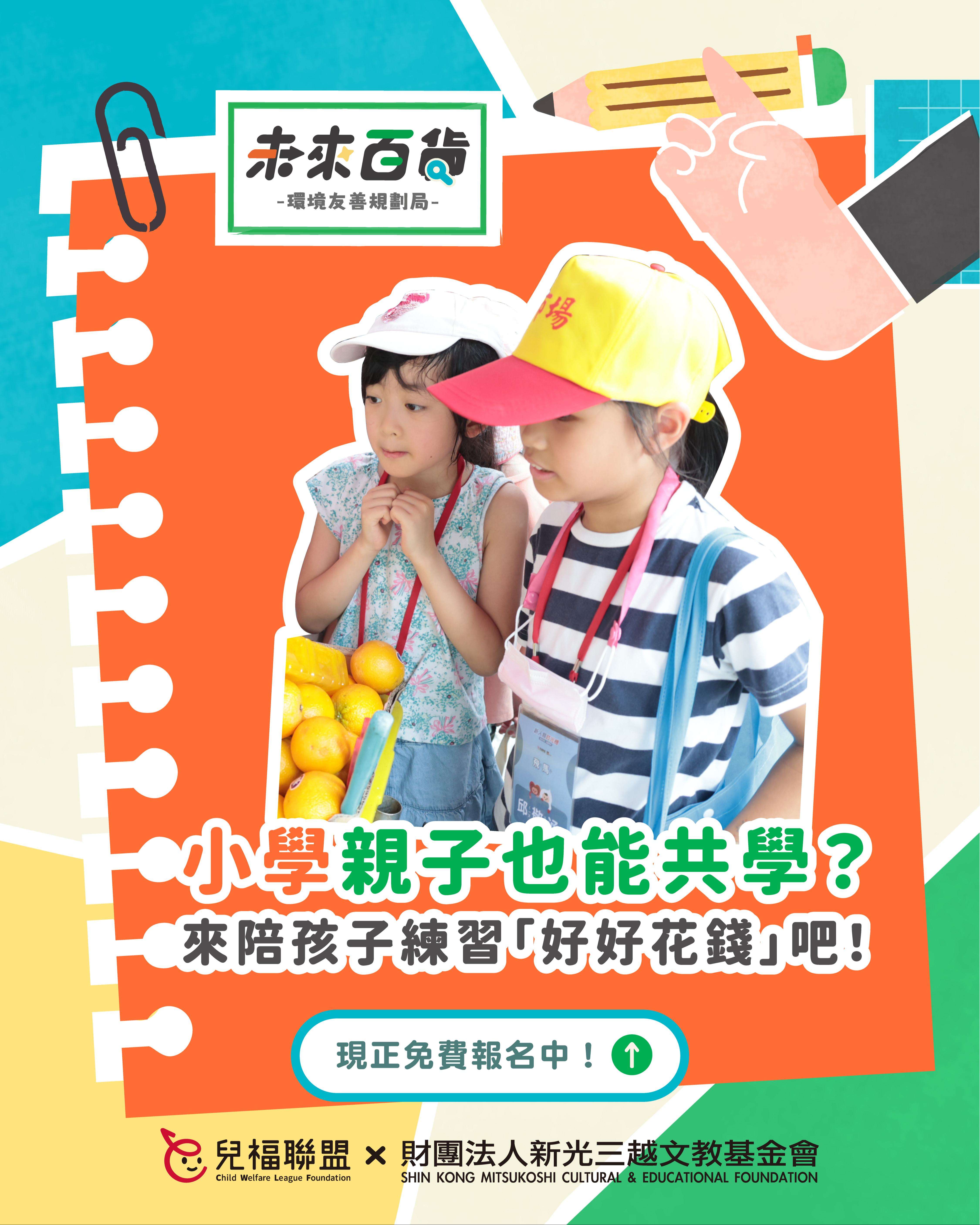 一、為培養學童面對未來社會的獨立思考、溝通表達、永續素養等能力,並促進親子共學機會,本會辦理「新人類時光機:未來百貨-環境友善規劃局」系列課程,透過貼近生活、以遊戲和體驗為主的學習設計,引導孩子理解責任消費、環境保護等永續議題,練習整理觀點並付諸行動,以家庭、自身的生活為起點,為社會帶來良善的改變!