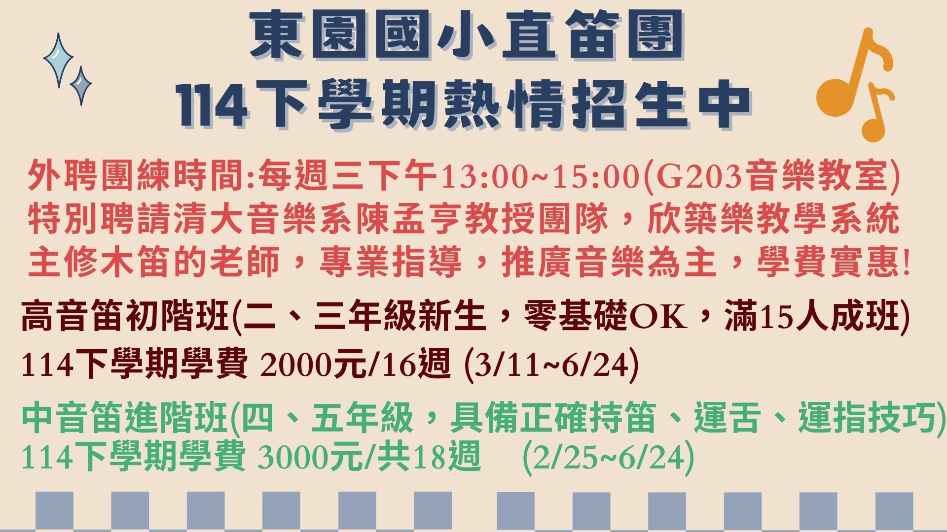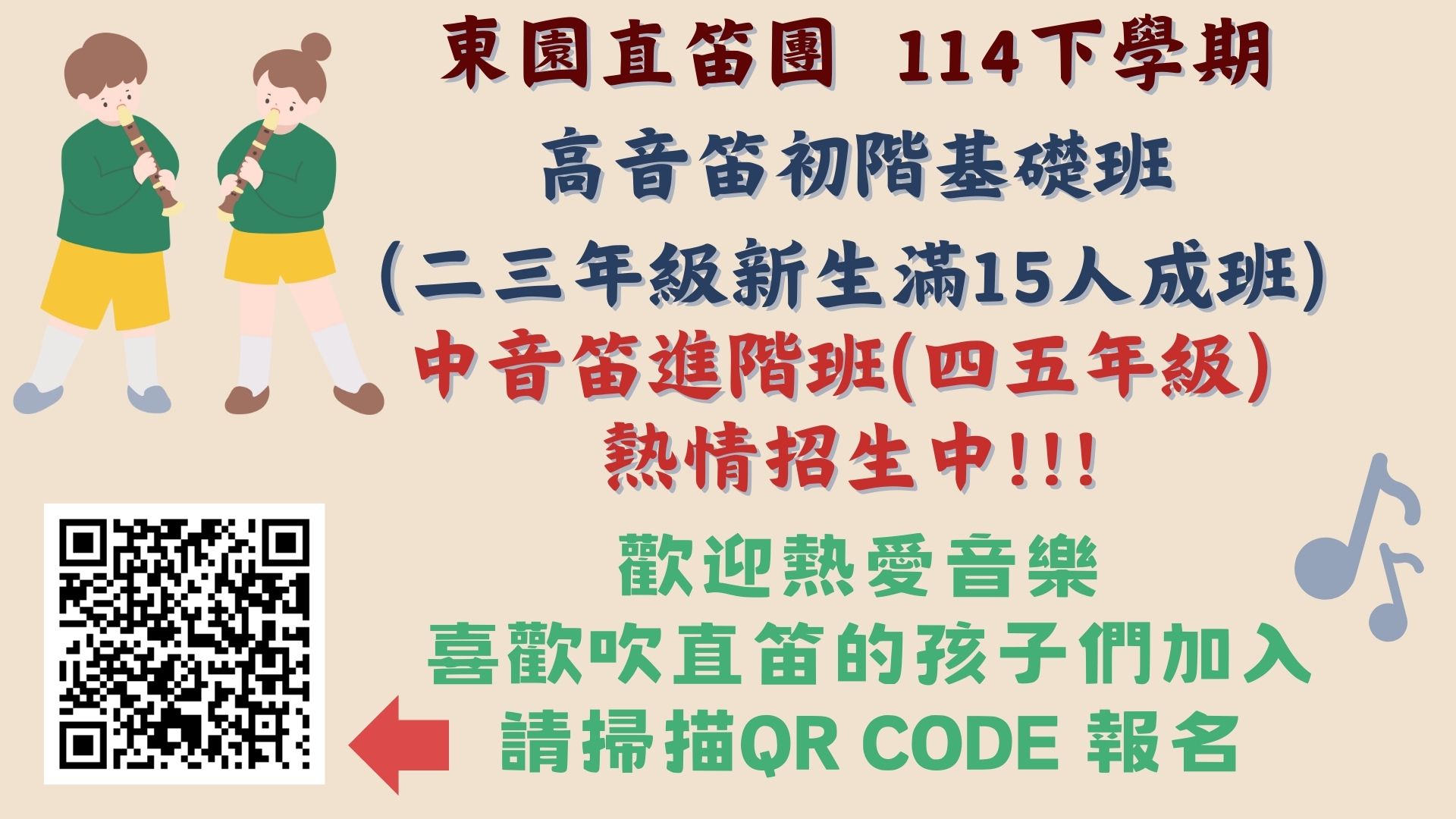 東園國小直笛團,114下學期熱情招生ing~