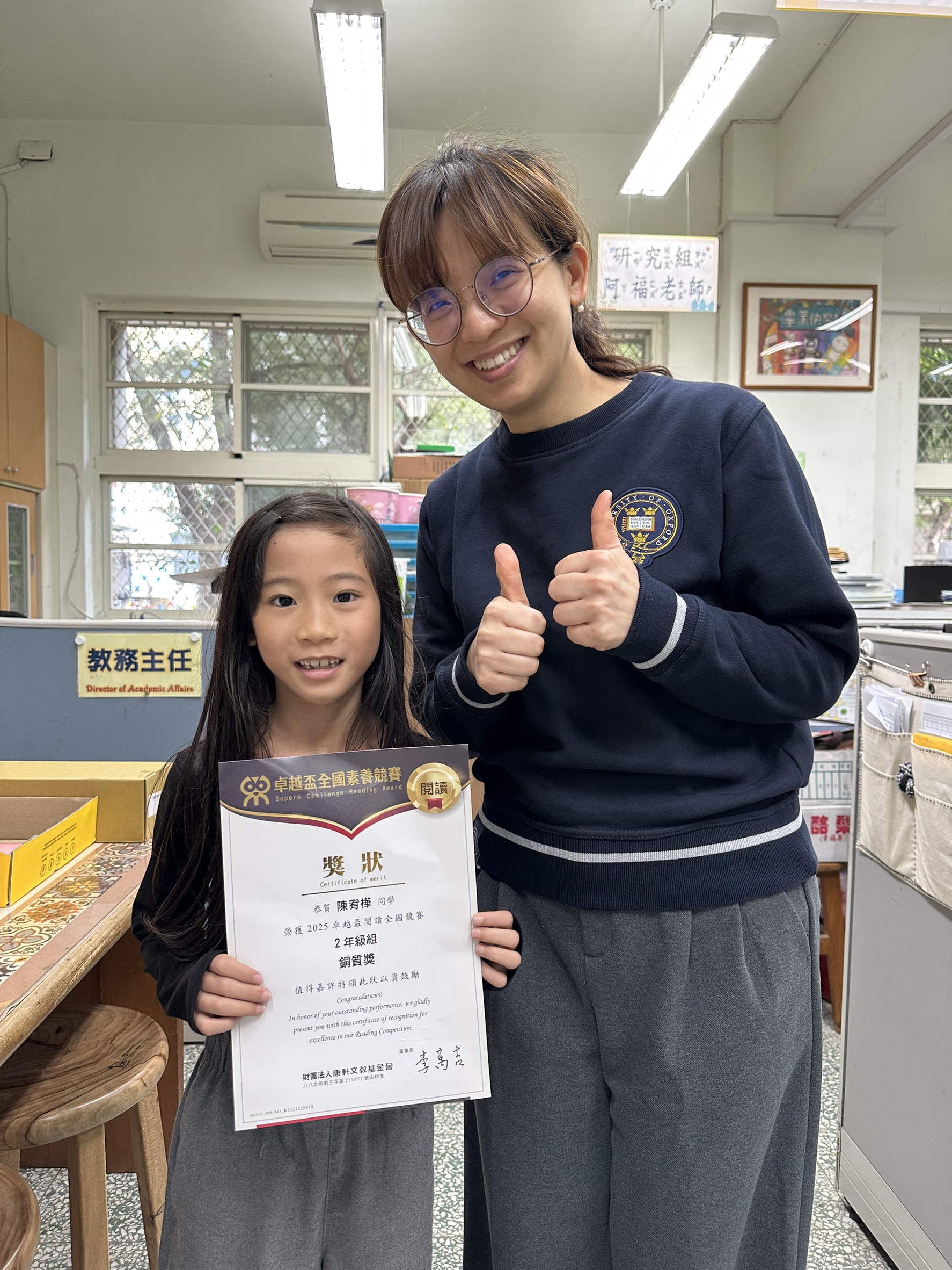 賀 212陳宥樺同學 榮獲2025全國競賽2年級組銅質獎 ! 真棒! 與主任合影留念~