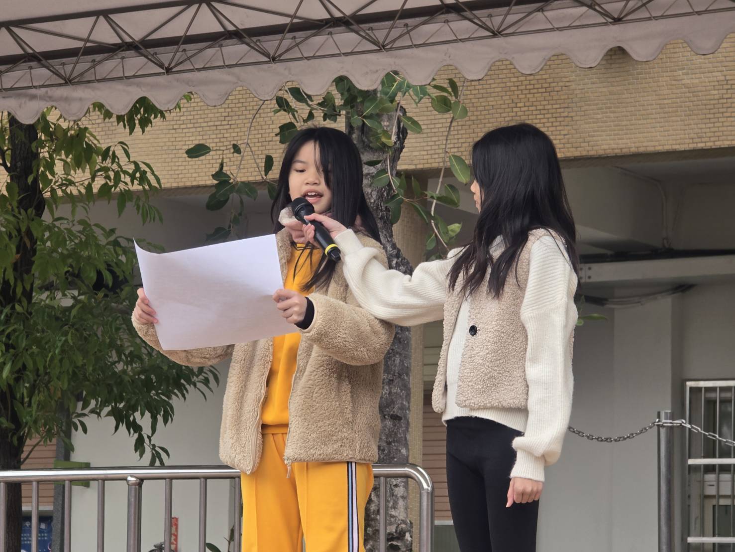 學校特於1月7日升旗典禮中,邀請代表新竹市參加全國語文競賽的黃宣融同學現場朗讀,