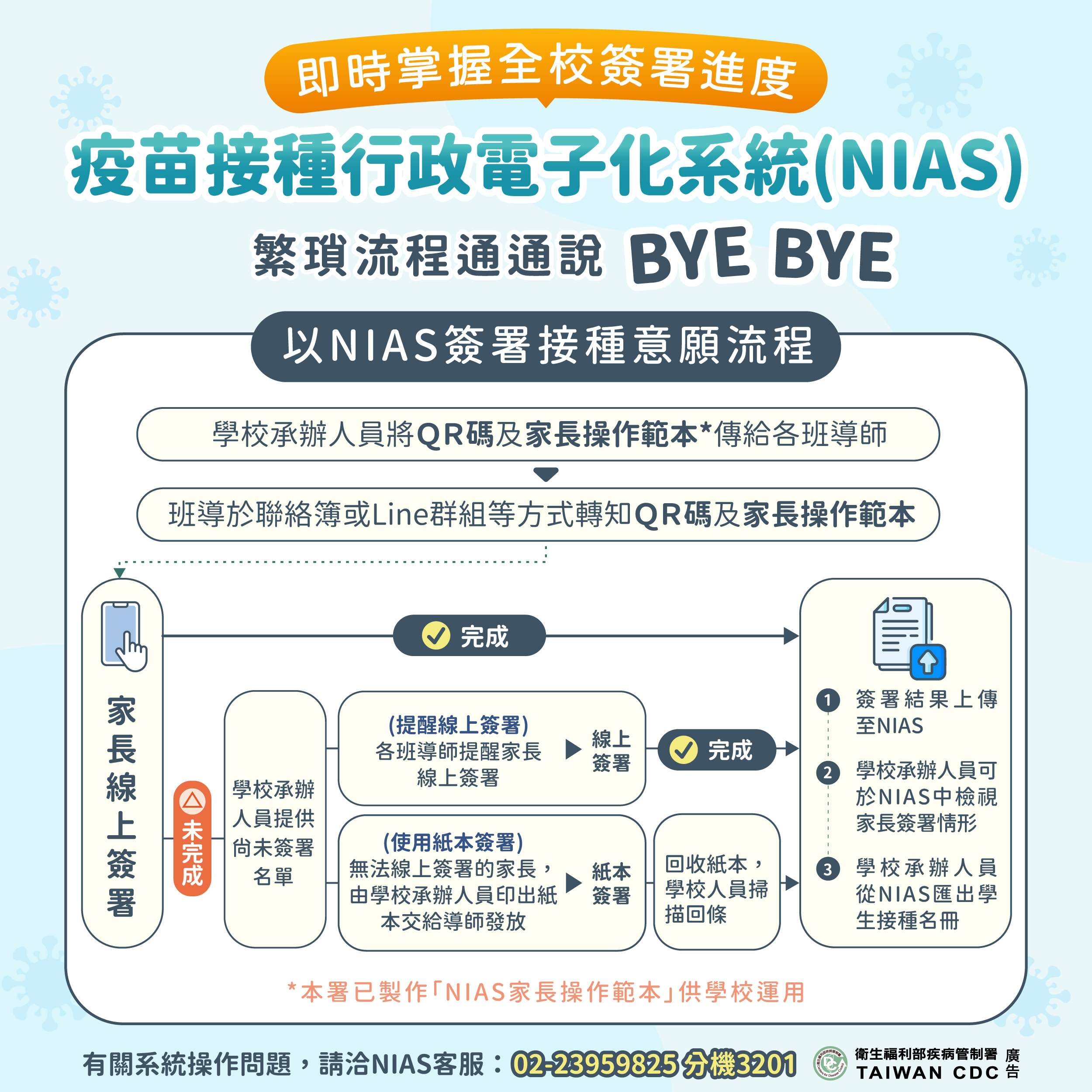 三、流感疫苗接種計畫校園流感疫苗電子化系統(NIAS),「流感疫苗接種意願書」全面採用無紙化電子系統,接種意願書採線上簽署。